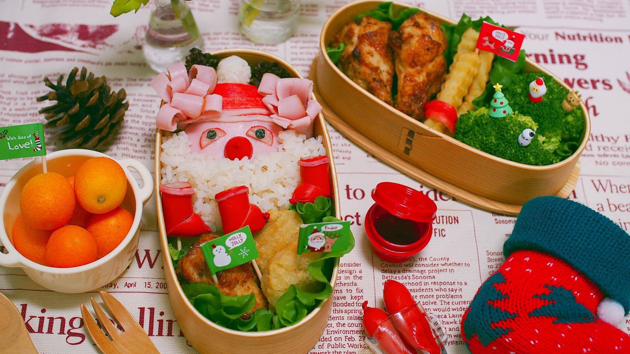 Chị Nguyễn Quỳnh Hoa (34 tuổi) hiện đang sinh sống và làm việc tại Tokyo, Nhật Bản. Để mang không khí Giáng sinh vào mỗi bữa ăn và tạo niềm vui, sự hứng khởi cho con nhỏ chị đã khéo léo trang trí những hộp cơm đa dạng màu sắc đặc trưng của Noel.